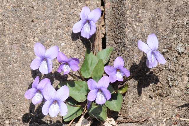 先日ちょっと出かけたときに見かけたすみれです。
