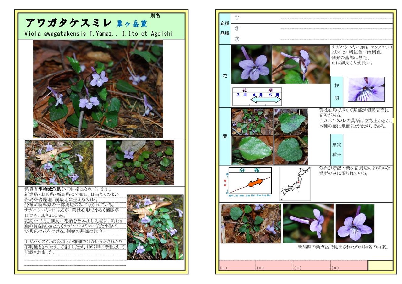 ナガハシスミレに似ているが小型のものが多く、分布が新潟県の一部に限られている。