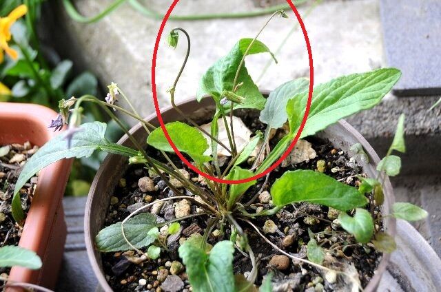 昨年の春に花が終わった鉢植えのスミレを見て びっくりしました。